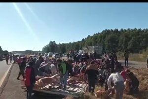 Volcó un camión frigorífico en Entre Ríos y fue saqueado por vecinos