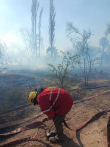 Controlan incendio en Los Sauces gracias a un operativo coordinado y detienen a tres personas