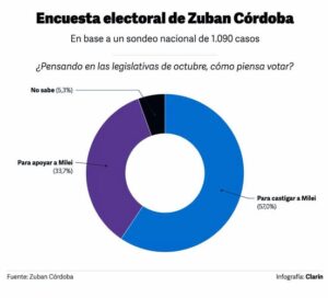 Un sondeo de Zuban Córdoba reveló que la fuerza oficialista se encuentra 23 puntos abajo en intención de voto, mientras crece el descontento social hacia el gobierno de Javier Milei.