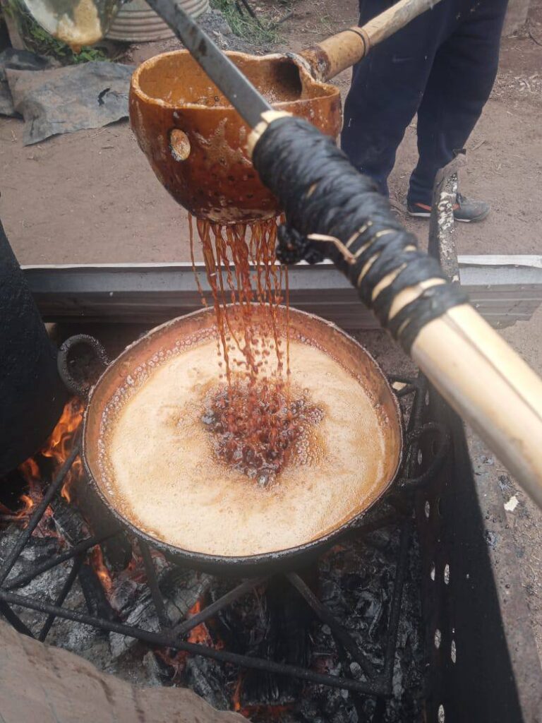En la localidad de Villa Unión, equipos técnicos continúan trabajando en la elaboración de arrope de uva, una producción tradicional que busca potenciar el valor agregado de la materia prima local y generar nuevas oportunidades para pequeños productores.