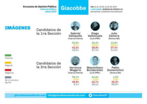 En la provincia de Buenos Aires, los números muestran un escenario aún más ajustado. En la primera sección electoral, Fuerza Patria y La Libertad Avanza se disputan voto a voto. Gabriel Katopodis (FP) obtuvo un 33,9% de imagen positiva y un 42,2% de negativa, mientras que Diego Valenzuela (LLA) lo sigue de cerca con un 32,3% de imagen positiva y un 29,9% de negativa. Julio Zamora, de Somos Buenos Aires, muestra un alto nivel de desconocimiento (41,6%) y una imagen positiva de solo 12,8%.