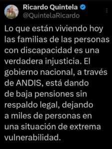 “Lo que están viviendo hoy las familias de las personas con discapacidad es una verdadera injusticia. El gobierno nacional está dando de baja pensiones sin respaldo legal, dejando a miles de personas en una situación de extrema vulnerabilidad”, expresó el mandatario.