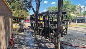 El hecho ocurrió frente a la parada ubicada cerca de DGIP y Desarrollo Social. El fuego consumió la unidad y provocó el corte del tránsito y del servicio de internet en la zona.