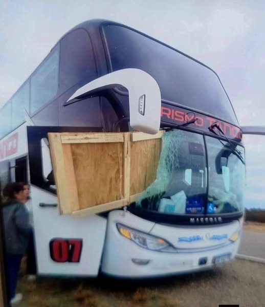 Un cajón se incrustó en el parabrisas de un colectivo en la Ruta 38 y milagrosamente no hubo heridos